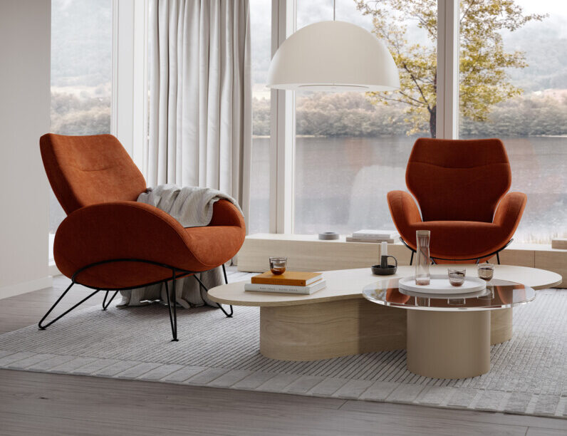 De tekniske funktioner er diskret integreret i stolens form, hvilket giver et harmonisk og strømlinet udtryk. Med sine bløde linjer og omsluttende design skaber Paz en behagelig og afslappende oplevelse.