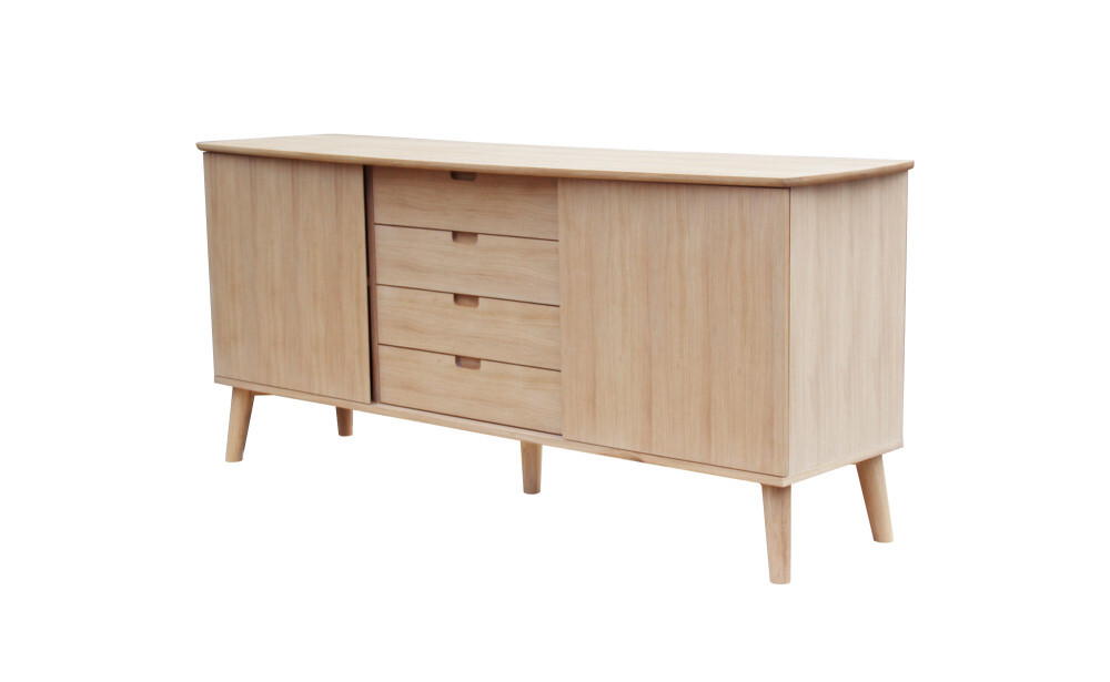 Møblet er lavet af fineret egetræ, og benene, hvis de vælges, er lavet af massivt egetræ. Hele skænken er behandlet med olie og fås i to farver: