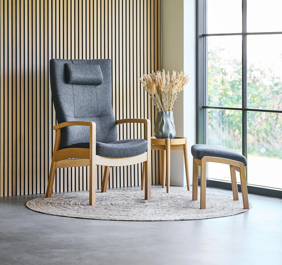 Stolen tilbyder siddekomfort i topklasse, og med den matchende Pi 8490 skammel kan du opnå maksimal komfort. Vi tilpasser både lænestolen og fodskamlen efter dine behov og ønsker, så de passer perfekt til dig og giver den optimale siddeoplevelse.