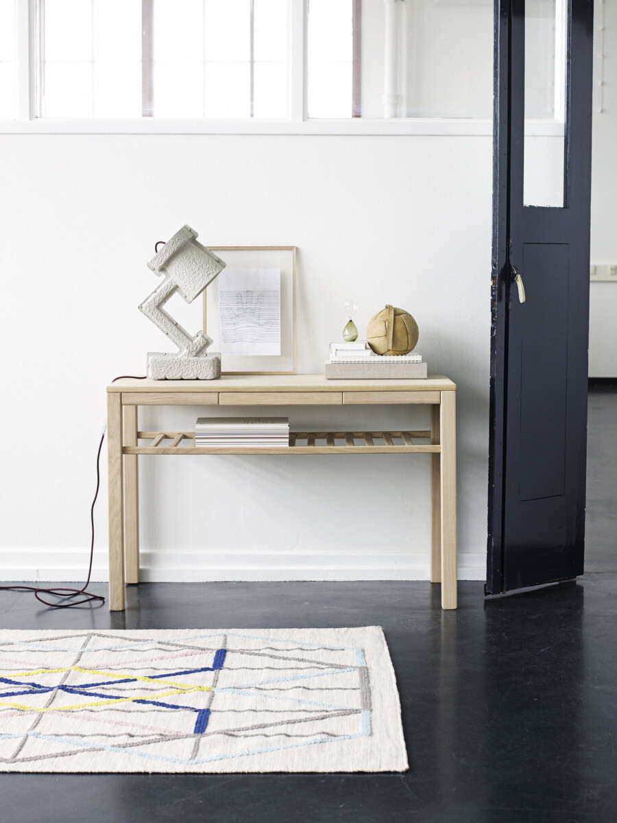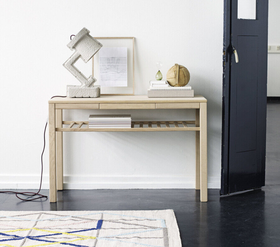 Med sin rummelige skuffe og praktiske hylde tilbyder Klassik konsolbordet optimal opbevaringsplads, hvilket gør det ideelt til entréen, gangen eller andre områder, hvor der er behov for både funktion og elegance.