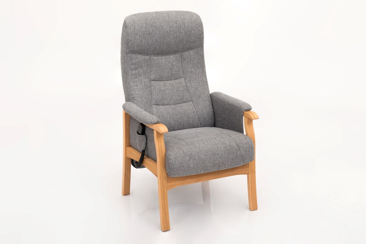Stol med en dejlig fast siddekomfort. Ryggens vinkel kan reguleres og stolens armlæn giver et stabilt afsæt til at rejse sig op. Fås i mange stof- og lædervarianter.