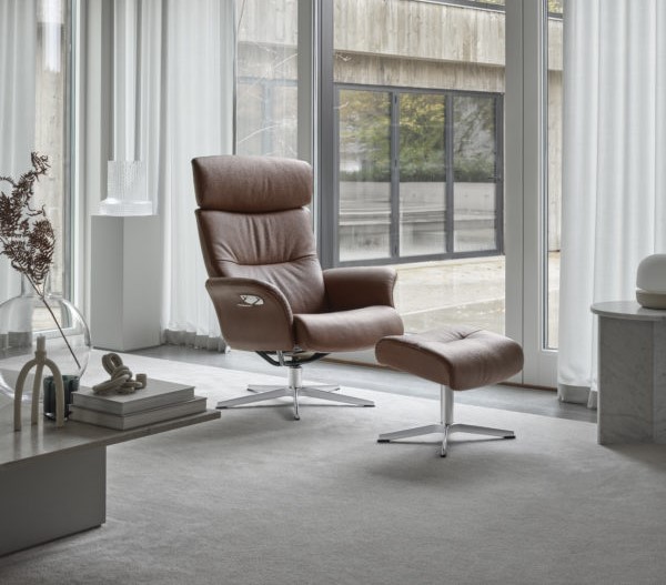 Det rene og enkle design gør Master Classic til et perfekt match for mange forskellige hjem og indretningsstile. En sand mester i afslapning med sit naturlige og indbydende udtryk. Justerbar ryglænsfunktion i højre side af stolen. Justerbar benstøtte med greb i venstre side af stolen. Med et enkelt greb kan du ændre vinklen på både ryglæn og benstøtte.