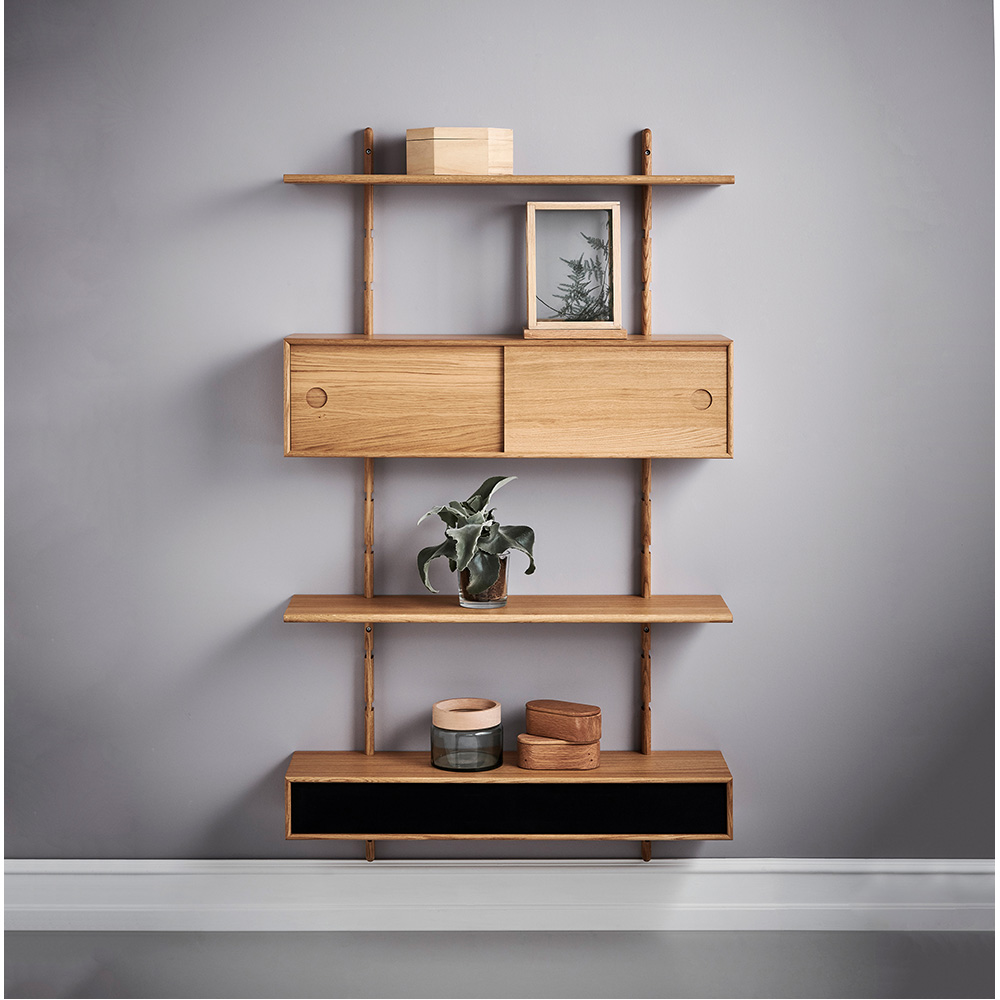 En serie af elegante, væghængte hylder og skabe, der giver dig mulighed for at sammensætte din egen vægkombination præcis efter dine behov.