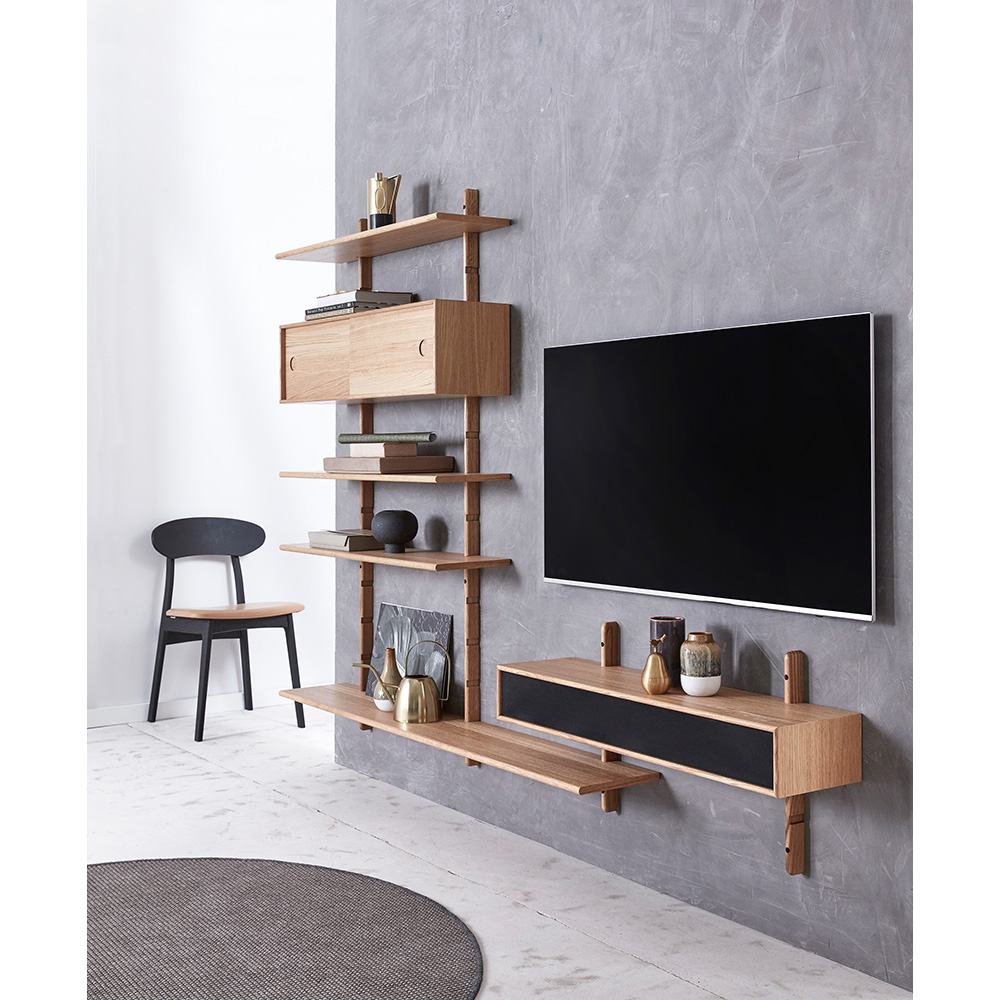En serie af elegante, væghængte hylder og skabe, som giver dig mulighed for at sammensætte din egen vægkombination præcis efter dine behov.