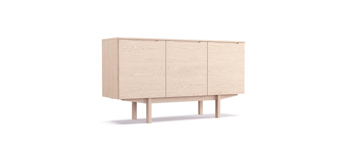 Model #304 er en mindre udgave af den populære skænk #306. Den har tre døre: én dør, der indeholder både en skuffe og en hylde, og to låger, som åbner op til en stor, rummelig hylde.