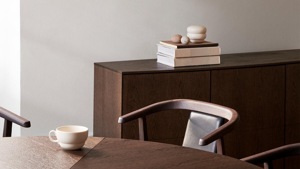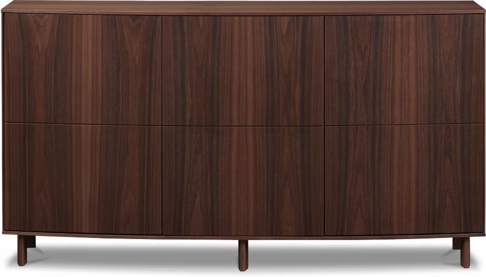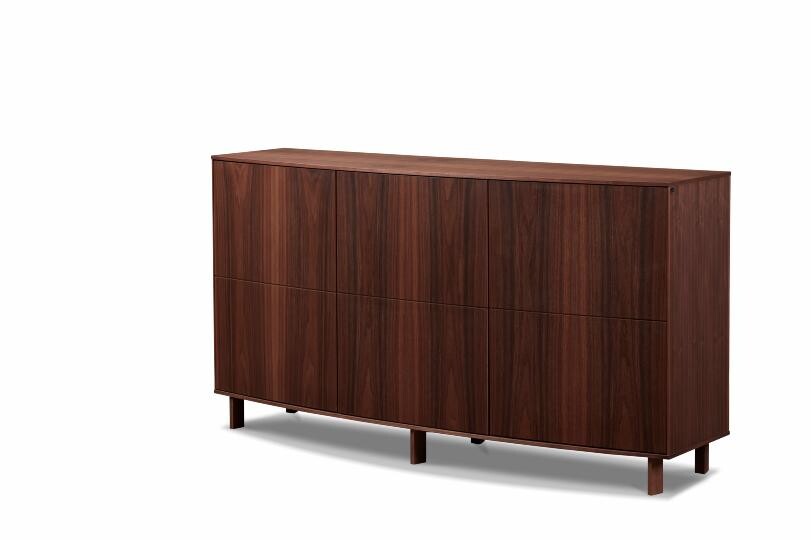 Fronten er udført med formspændte, finerede låger, der let bøjes i en rolig og indbydende form – et udtryk, der emmer af enkel elegance.