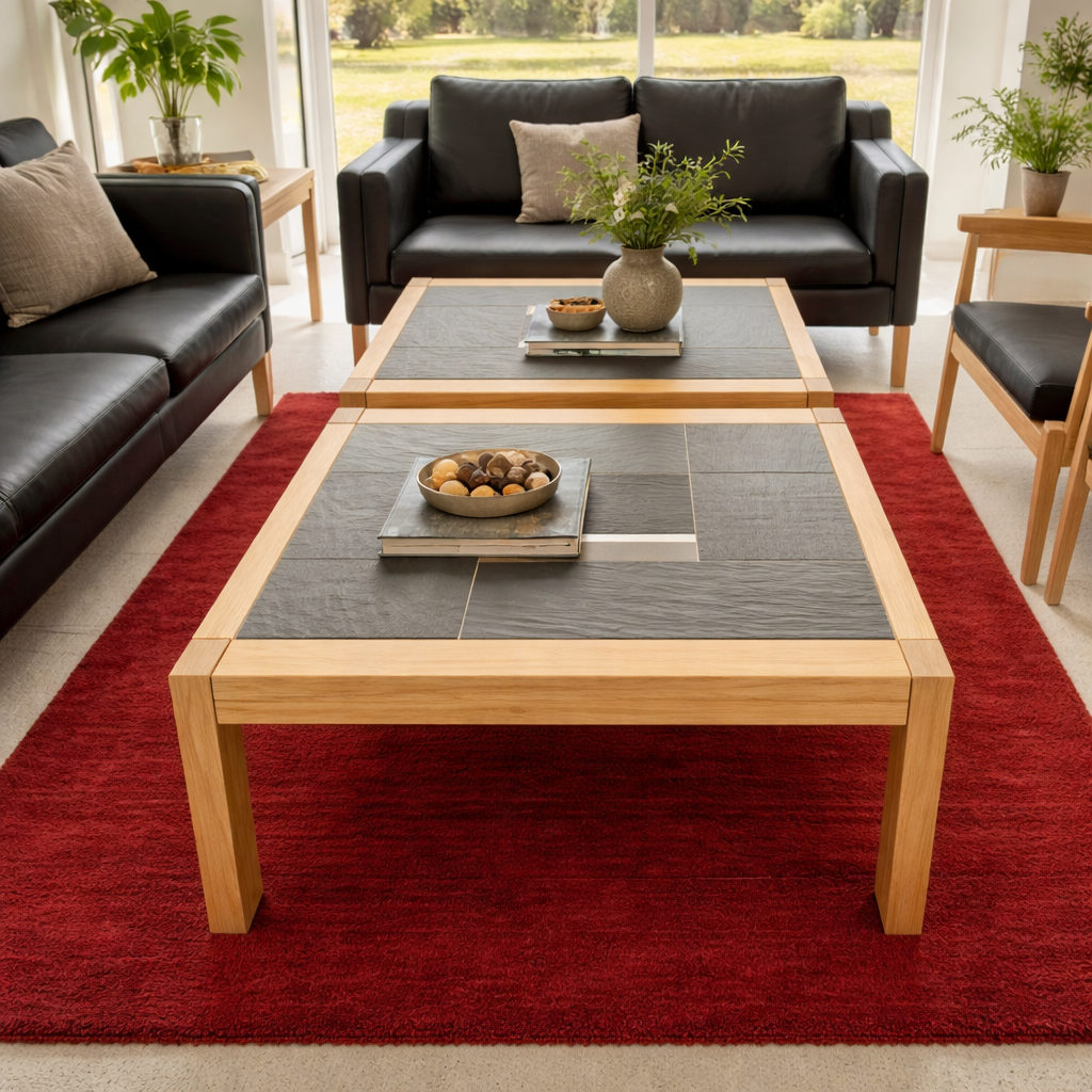 Sofabordsæt - 2 delt med kakler - Massiv eg sæbe