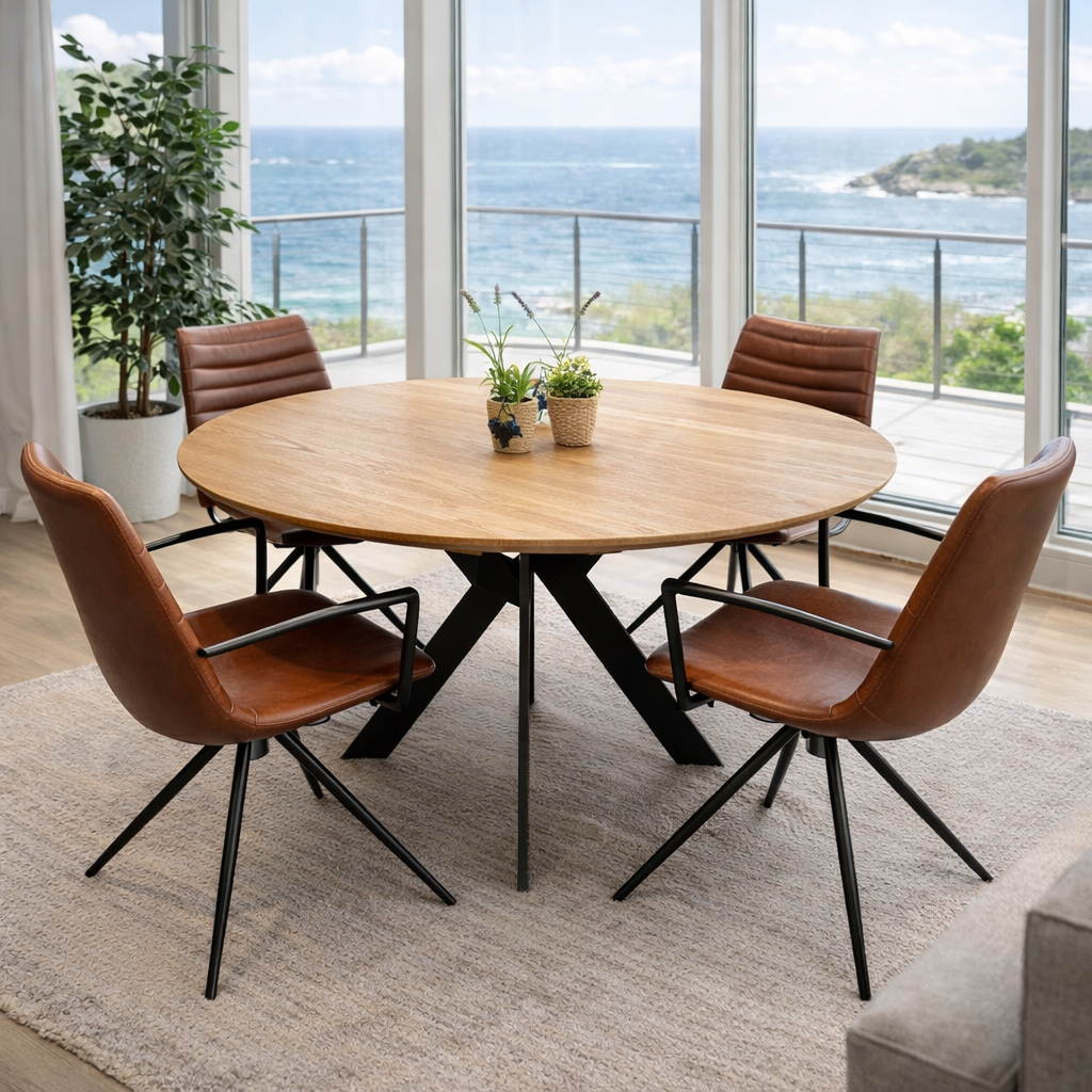 Rundt spisebord i eg natur olie