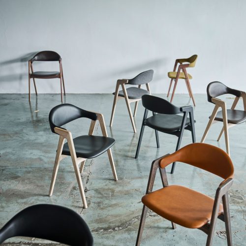 Indbyggede armlæn, polstret sæde og ryg. Siddehøjde: 46 cm.
