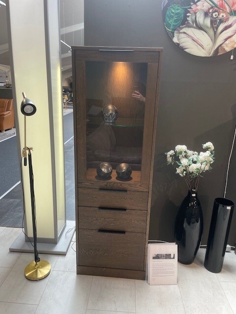 Vitrineskab smal model inkl. lys – Røget eg